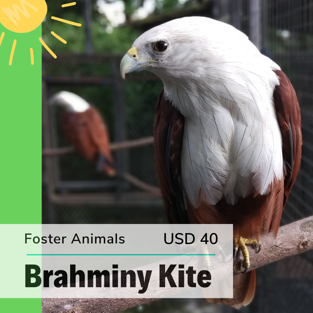 This Brahminy kite will stay with us for the rest of its life due to permanent foot and wing injuries. The Brahminy kite population is declining because of things such as habitat loss, illegal poaching and the overuse of pesticides.